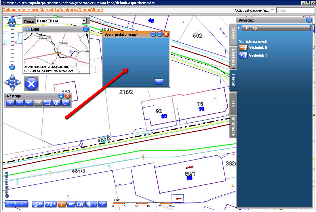 Obrázek: Vazba na GIS: Otevření mapy